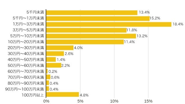 個人間のお金の貸し借りに関する調査。「貸した金額」もっとも多かったのは「1〜3万円未満」、次いで「5000〜1万円未満」、3番目が「5000円未満」でした。「貸した理由」で多かったのは「飲食代」や「欲しい物のため」など。